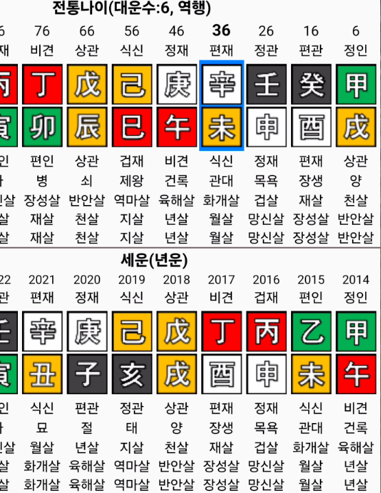 - 원국이 월지 관과 년지 식상이 싸우는 구조인데 36대운이 신미 대운으로 식상운이 들어오면서 조직 생활에 회의감이 커지고 개인적인 자유를 추구하게 되었던거 같음.