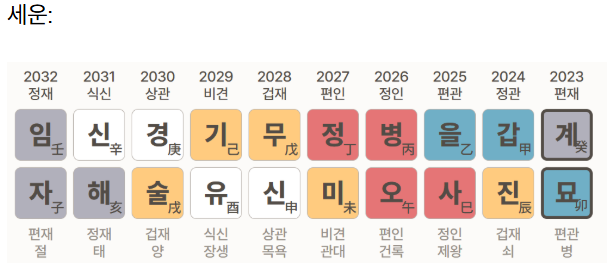 | [사주명리] 북한 김정은 위원장(1984. 1. 8.) 사주명리 재미 운세 풀이, 권좌에서 언제 내려올 것인가..추론해보기.. (4) | 2025.06.22 |