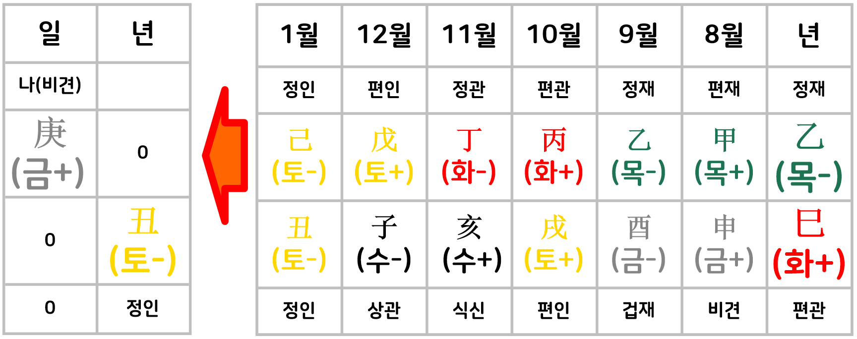 년간(年干)의 영향과 년지(年지) 축토와의 관계 심화: