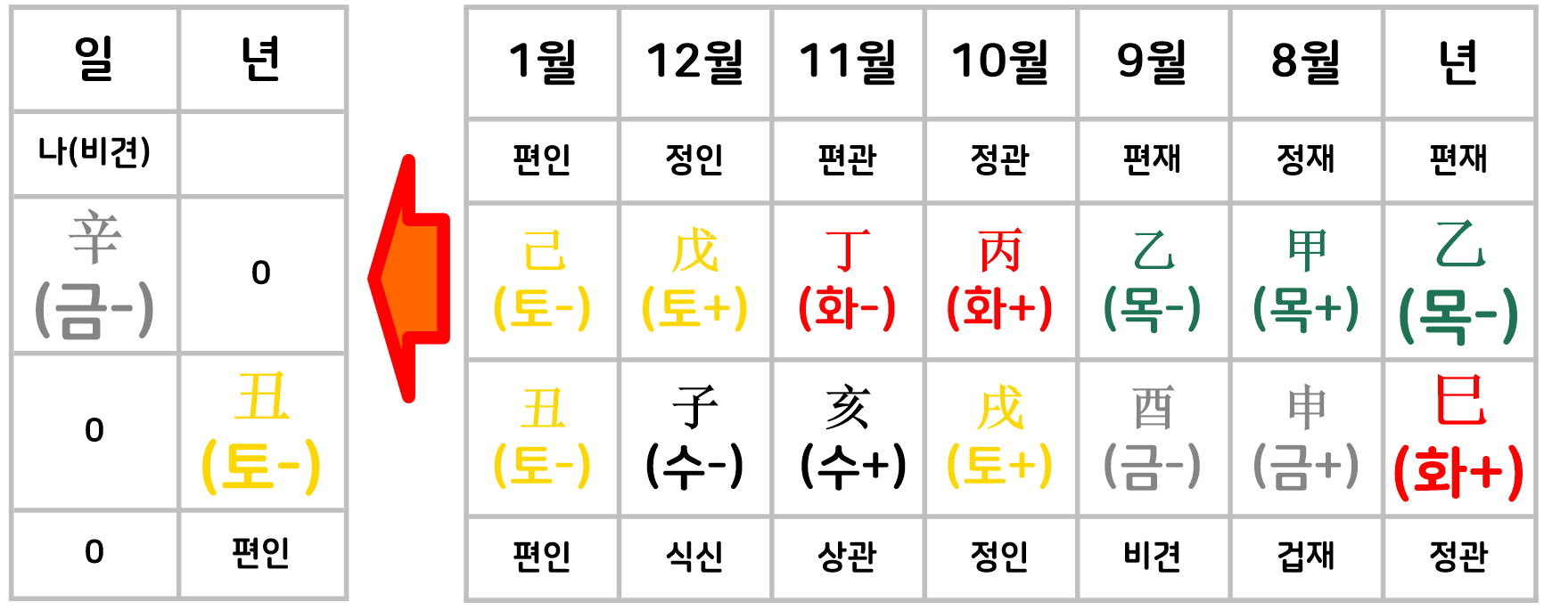 년간(年干)의 영향과 년지(年지) 축토와의 관계 심화:
