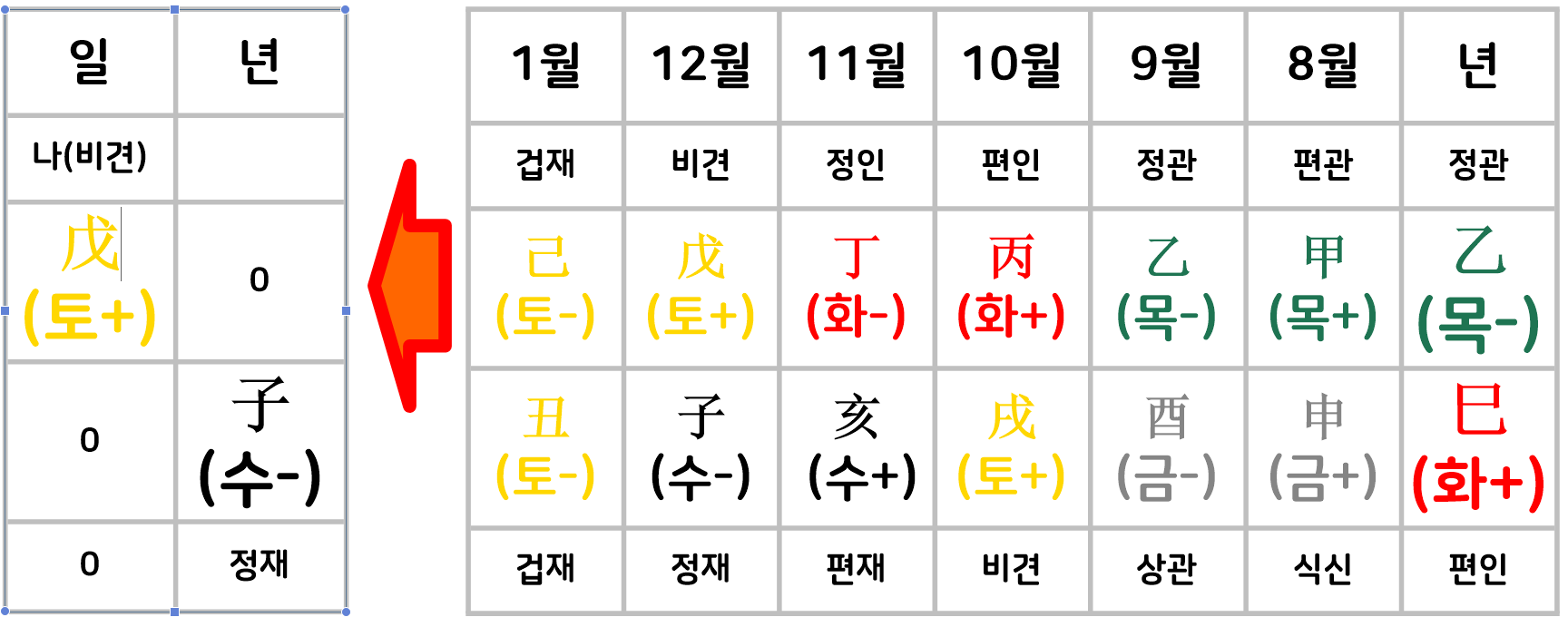년간(年干)의 영향과 년지(年지) 자수와의 관계 심화: