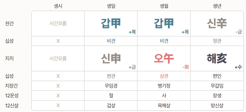 - 일주: 갑신(甲申)일주 - 갑목(甲木) 일간