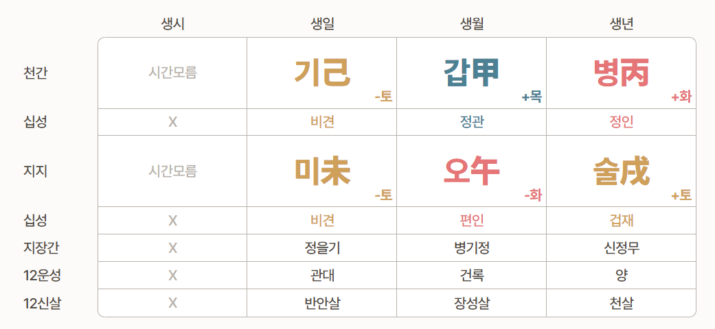 - 일주: 기미(己未)일주 - 기토(己土) 일간