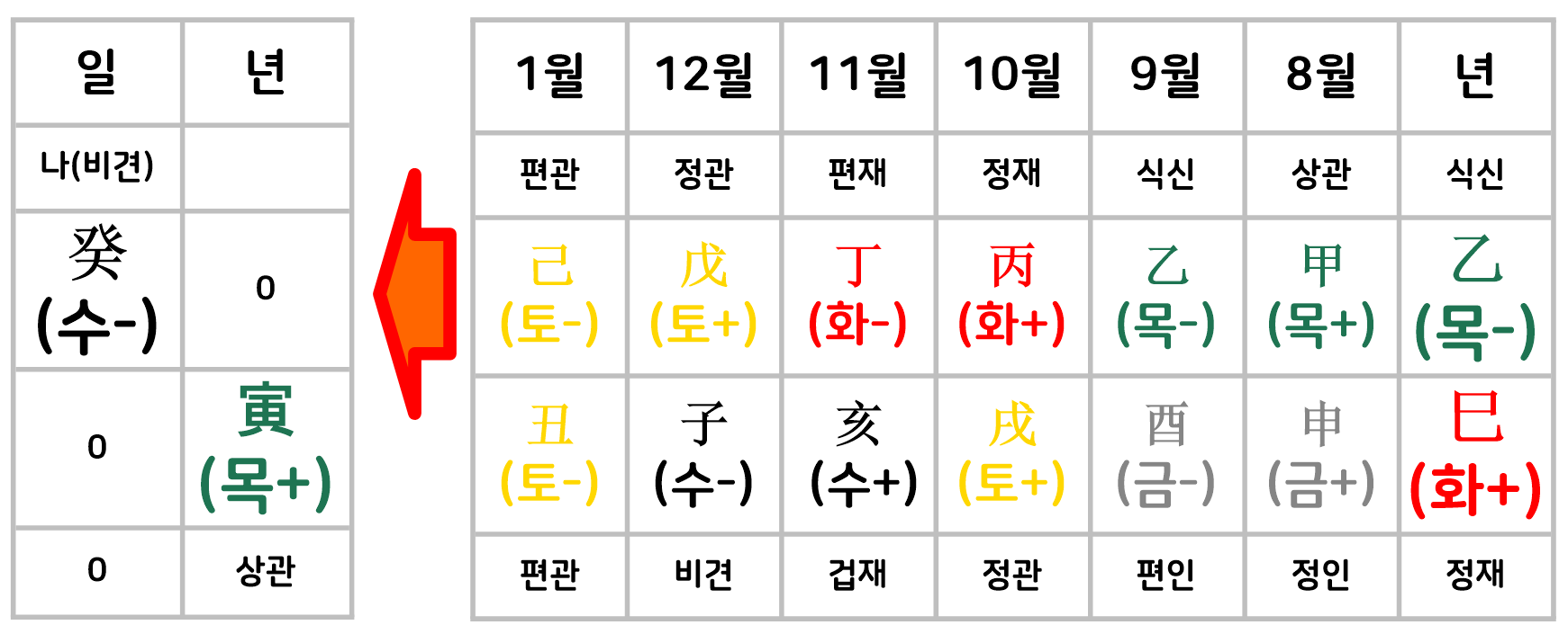 년간(年干)의 영향과 년지(年지) 인목과의 관계 심화: