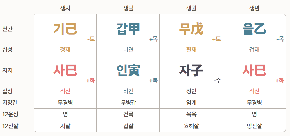 - 년: 을사(겁재 식신)