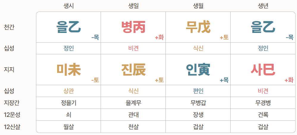 • 년: 을사(상관 편재)
