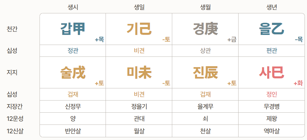 - 년: 을사(정관 편인)