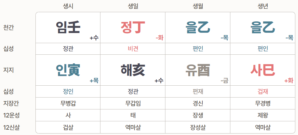 - 년: 을사(정인 비견)