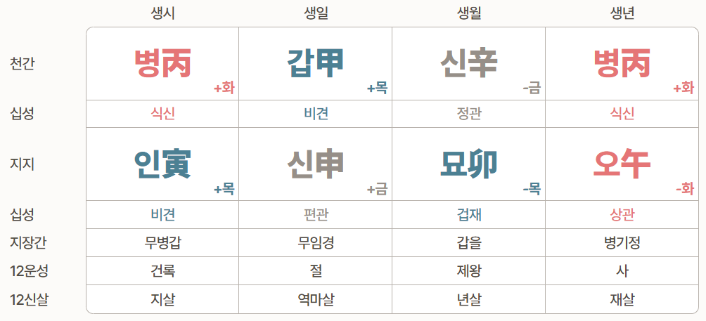 ※ 본 분석은 년주, 월주, 일간만을 바탕으로 한 것이므로, 정확한 사주 풀이를 위해서는 태어날 일주와 시주까지 알아야 합니다.